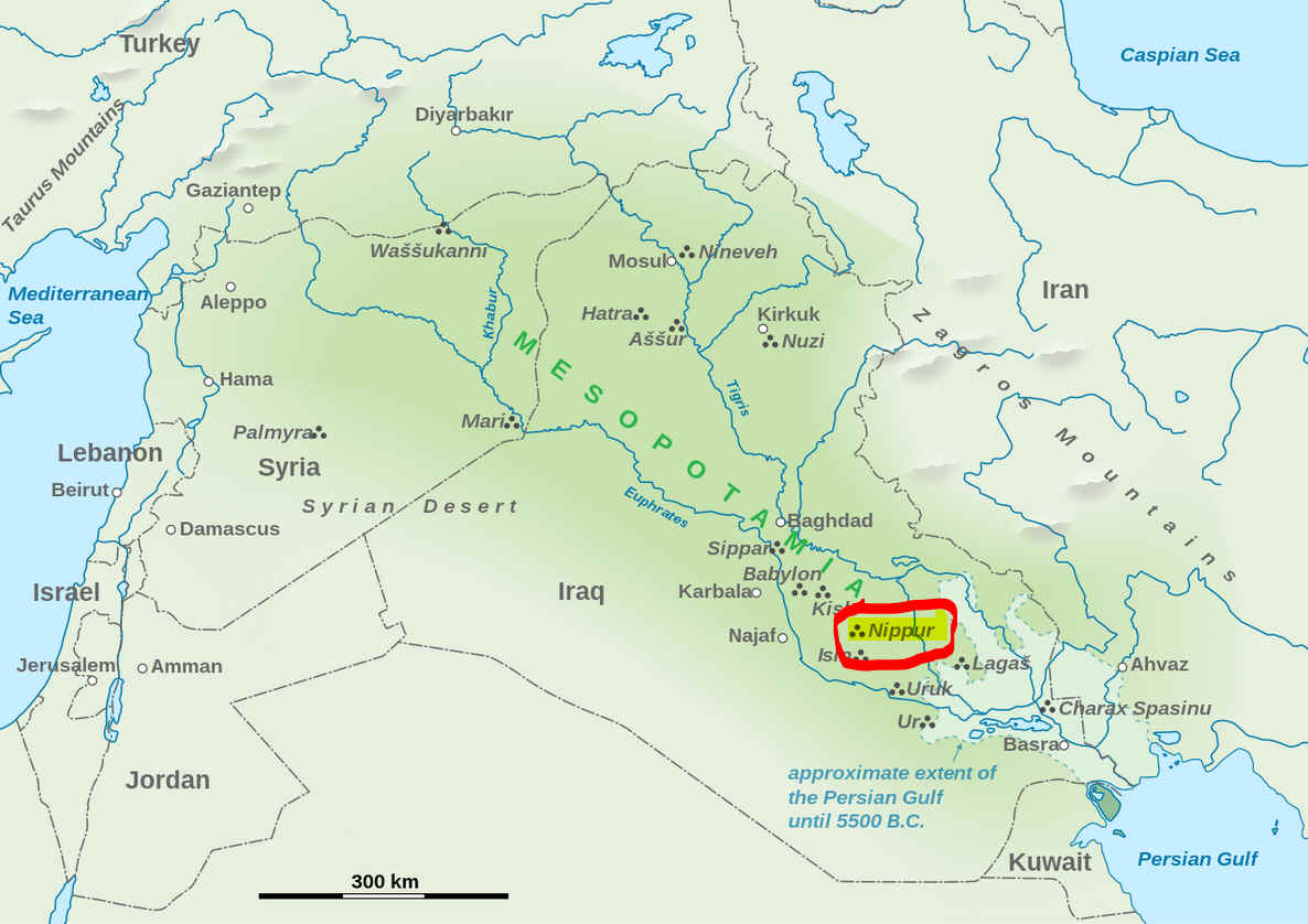 The Map of ancient Mesopotamia (Source: Wikipedia):